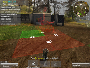 Several classes are able to deploy weapons systems onto the battlefield. Deployments can only be dropped in a territory you own - indicated by the green territory border on the command map.