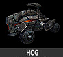 Description : avec une carrosserie que seul un ingénieur pourrait apprécier, le Hog (comme la plupart des véhicules Stroggs) n'accorde aucune importance à l'esthétique ou au confort. Son absence d'amortisseurs le rend difficile à contrôler sur les terrains accidentés, mais il peut accélérer [touche MAJ par défaut] sur les routes ou les terrains plats. Lorsqu'il accélère, le Hog génère un bouclier devant lui, ce qui lui permet de charger les soldats et les véhicules de la FDM avec un effet dévastateur. Le conducteur peut aussi lancer des leurres anti-missile [touche 1 par défaut] pour se défendre. Le servant se charge de l'infanterie avec l'hyperblaster du toit, et peut infliger de sérieux dégâts aux véhicules aériens volant à basse altitude et aux autres cibles légèrement blindées.